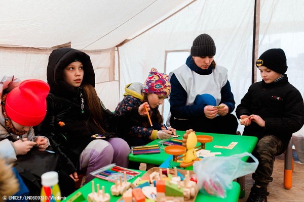 こうした自然災害や紛争などの緊急事態においては、家庭・学校・遊び場・地域といった子どもたちを取り巻く生活環境は大きく変化し、子どもたちは心身共に大きな影響を受けてしまいます。ユニセフが現在、トルコの被災地で展開している「子どもにやさしい空間」は、一瞬にして日常を奪われ、過酷な状況に置かれた子どもたちに、学習や遊びなどの日常のリズムを取り戻す機会を提供し、心のケアを図ります。ここでは、子どもたちに遊びや学びの場を作るほか、心や体の健康を支えるための多様な活動や情報も提供しています。