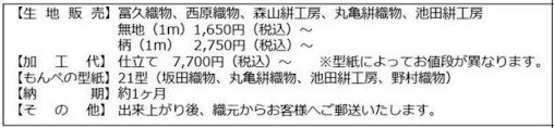 通常はもんぺ取り扱いの無い織元の生地を使って、お好きなパターンでもんぺのオーダーを承ります。