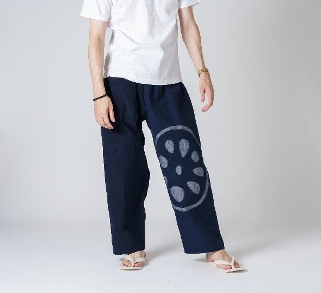 大きなレンコン柄が印象的な縁起の良い新作もんぺ。