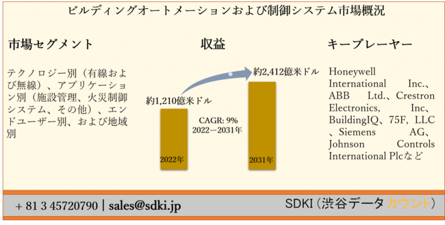 SDKI Inc.は、「ビルディングオートメーションおよび制御システム市場ー世界の予測2022ー2031年」新レポートを 2022年03月08日に発刊しました。この調査には、ビルディングオートメーションおよび制御システム市場の成長に必要な統計的および分析的アプローチが含まれています。レポートで提供される主要な産業の洞察は、市場の既存のシナリオに関する読者に市場の概要についてのより良いアイデアを提供します。さらに、レポートには、市場の成長に関連する現在および将来の市場動向に関する詳細な議論が含まれています。
