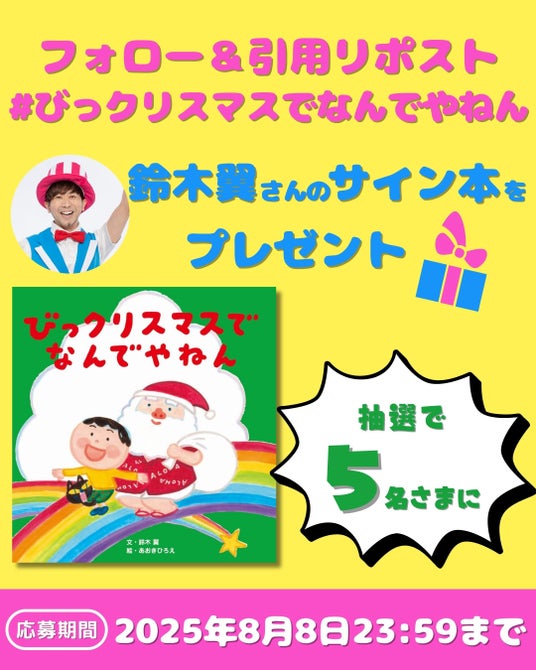 フォロー&引用リポストで、著者・鈴木翼さん直筆サイン入り『びっクリスマスでなんでやねん』を5名様にプレゼントします。