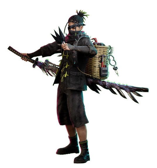プレイヤーの分身となるボディで「サスケ」を選ぶと、豊富なバックパック容量を活かしてアイテム回収がはかどります。また、スキル「呪いの手裏剣」による遠距離攻撃で、敵に被ダメージが上昇する「呪い」を与えます。デュオプレイ時に同じ敵を狙うことで味方の火力を向上させるなど、戦略の幅が大きく広がります。