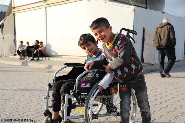 ユニセフは、トルコ政府やパートナーと手を携えて、命を守る物資の提供や緊急の心理社会的サポートを行っています。またおとなの同伴者がいない子どもや家族と離ればなれの子どもの特定、子どもにやさしい仮設学習空間の設置、水・保健・栄養のニーズの把握などについて、政府のサポートを続けています。