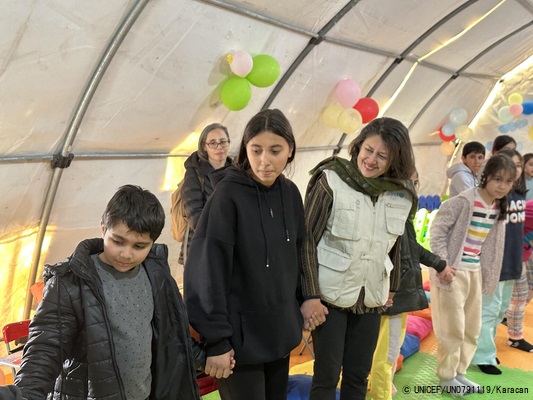 ユニセフはパートナーを通じて、ガジアンテップ、キリス、マルディン、ディヤルバクル、シャンルウルファの各県で、5,100人の子どもたちに心理的応急処置とレクリエーション活動を提供しました。