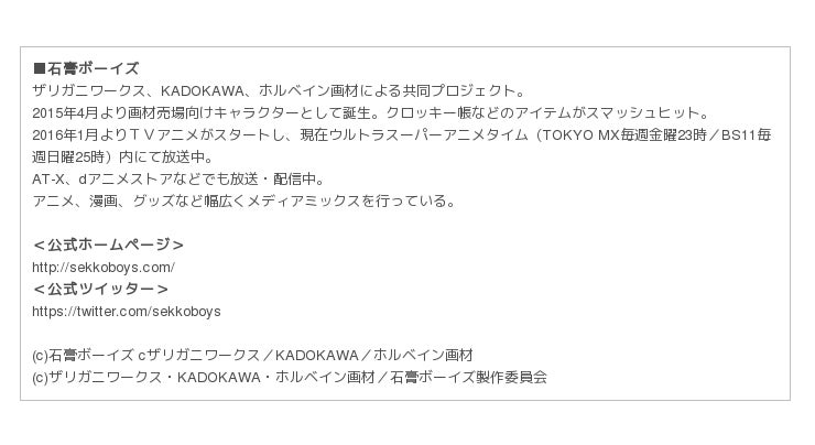 株式会社KADOKAWAと株式会社ネイキッドは、昨年より展開を行う「KADOKAWA×NAKED. 石膏ボーイズ産学連携プロジェクト」の第2弾として、東京コミュニケーションアート専門学校(以下、TCA)の卒業進級制作展『we are TCA 2016』内で、「プロジェクションマッピング」「グッズ・キャラクターデザイン」「ショップデザイン」の3部門において、石膏ボーイズをテーマにした表現を課題とした制作物が展示を行うこととなった。