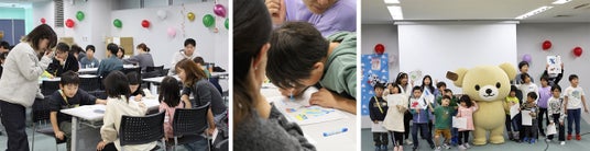 工場の様子を解説する映像や社員による演劇を通して、ぬいぐるみ商品ができるまでの過程や仕事内容をアミューズメント景品の企画開発担当が説明。その後各自があったらいいな、ほしいな、と思うぬいぐるみを企画デザインし描くワークを行ったほか、クレーンゲームの試遊を実施。自分のアイデアを絵に落とし込み、商品になることを想像してみることで企画のお仕事体験を提供しました。