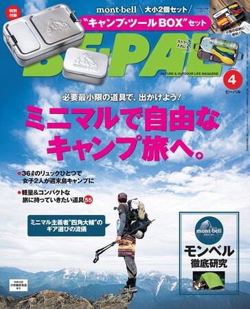 3月9日発売、BE-PAL4月号の特別付録は、日本を代表するアウトドアブランドmont-bellとコラボした『モンベル“キャンプ・ツールBOX”セット』です。ソロキャンプを楽しく、かっこよく演出できますよ。