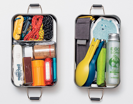 小型ナイフやロープ類、コンパクトなカトラリーや小分けボトル類を入れておけば、キャンプでギアの迷子も格段に減るはず。