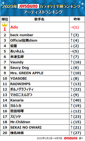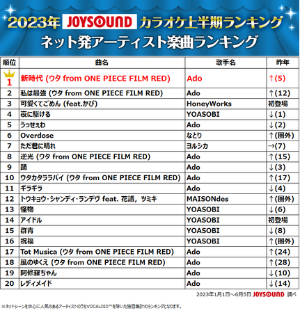 ▽2023年JOYSOUNDカラオケ上半期ランキング 特集ページ: