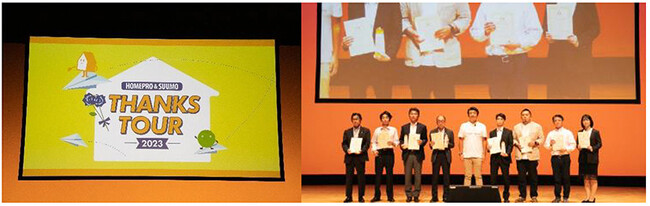 株式会社リクルート(本社:東京都千代田区、代表取締役社長:北村 吉弘、以下リクルート)とリフォーム会社紹介サイト「ホームプロ」を運営する株式会社ホームプロ(本社:東京都中央区、代表取締役社長:尾崎 泰三、以下 ホームプロ)は、「SUUMO」および「ホームプロ」に参画しているリフォーム会社を対象に、「ホームプロ&SUUMO サンクスツアー 2023」を東京(6月8日)、大阪(6月13日)、福岡(6月22日)の3都市で初めて合同開催いたしました。