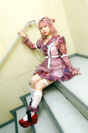 今回の衣装はフォトブックのイメージにふさわしい、とびきりキュートなミニドレス。チェックのミニドレスに、白いハーネスがポイントになっており、まこりんのピンクヘアにぴったりマッチ。そんなまこりんを目の前にしたお客様からも「今日の衣装もヘアメイクもかわいい!」と歓喜の声が上がっていた。
