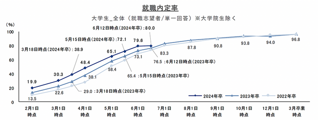 就職内定率は80.0%で、引き続き高い水準で推移。
