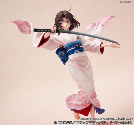 『劇場版「空の境界」』より、あらゆる物の死を視る“直死の魔眼”を持つ少女「両儀式」を、スケールフィギュア化!しなやかな身体とポージングにあわせて躍動感のある着物は360度どこから見ても見ごたえのある造形になっています。着物にはパール彩色を施し、上品な光沢感のある仕上がりに。模様も細密に再現いたしました。また、桜が舞い散る水面をイメージした台座はクリアパーツを使用し、華やかで透明感に満ちた仕上がりとなっています。真剣な眼差しで見つめる「両儀式」をお手元でご堪能ください。製品ページはこちら: