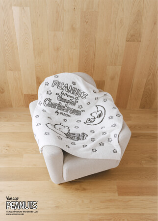 星空をバックに眠っているスヌーピー&チャーリー・ブラウンと一緒に、楽しい夢が見られそうなブランケット。