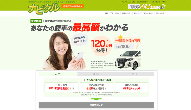 ご利用実績400万件以上の中古車の一括査定サイトです。
