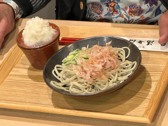 その後は、名水の場所といったら、のものを味わいに【福そば 本店】へ。“越前そば”の上におろしが乗った福井名物おろしそばをいただきます。