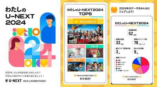 USEN&U-NEXT GROUPの株式会社U-NEXT(本社:東京都品川区、代表取締役社長:堤 天心)が運営する動画配信サービス「U-NEXT」は、2024年12月5日(木)より、2024年の視聴実績を振り返ることができるスペシャルサイト「わたしのU-NEXT 2024」をオープンいたします。