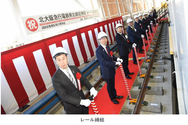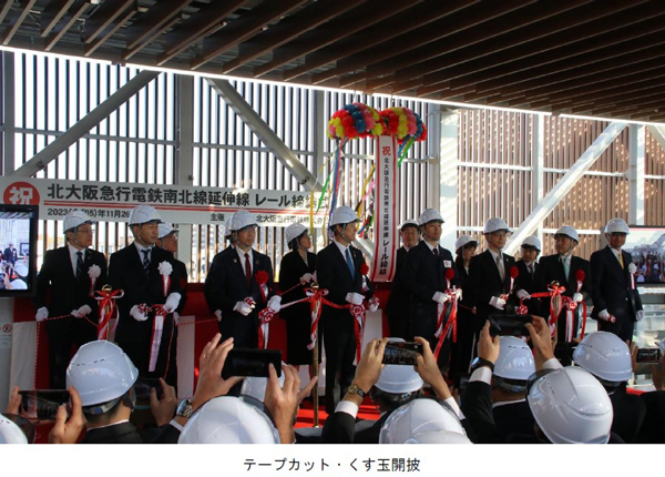 このたび、千里中央駅~箕面萱野駅間のレール敷設工事が完了し、全線のレールが1本につながったことを記念して、さる11月26日(日)に関係者によるレール締結式を箕面萱野駅にて執り行いました。