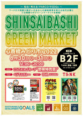 株式会社パルコ(本社:東京都渋谷区)が運営する、心斎橋PARCO 地下2 階・心斎橋ネオン食堂街にて、8 月30 日・31 日の2 日間限定でSHINSAIBASHI GREEN MARKET を開催します。