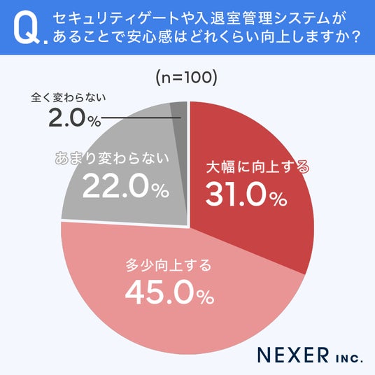 次に、セキュリティゲートや入退室管理システムがあることで安心感はどれくらい向上するかを調査しました。