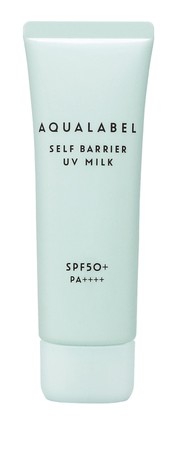 「アクアレーベル セルフバリア UVミルク」は、日中も外的ダメージから肌を守る、「アクアウエルネス」ラインの乳液・化粧下地・UVカット効果のある1本3役の朝用乳液です。SPF50+・PA++++でありながら、独自クラッシュカプセル技術により、紫外線防御剤を従来品比30%カット※3 し、みずみずしく肌負担の少ないテクスチャーを実現。温泉にも含まれるミネラル成分※1 配合で、日中もすこやかな肌が続きます。容器には、植物由来プラスチックを一部使用し、環境にも配慮しています。※3 アクアレーベルパーフェクトプロテクトミルクUV比較