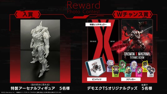 ※「特殊効果音武器セット」「アーセナル外見変更セット」「『DAEMON X MACHINA TITANIC SCION』デジタルアートブック&サウンドトラック」は発売日にお受け取りできます。その他「エキスパンションパック」「解放旅団外見変更セット」「統制局外見変更セット」は2025年配信予定となります。