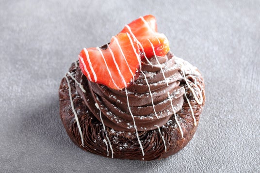サクサクのココアデニッシュにカスタードクリームを重ね、生チョコレートクリームといちごをトッピングしました。ほろ苦いチョコレートといちごのさわやかな酸味が絶妙です。