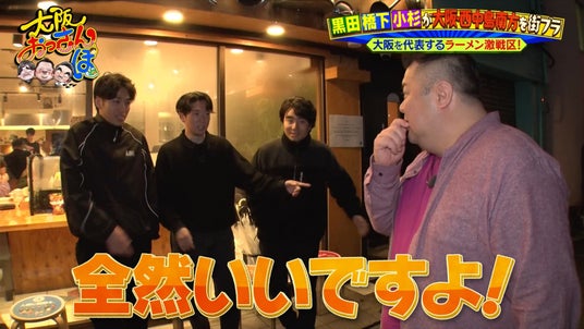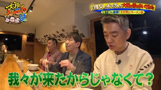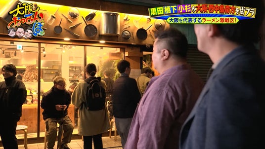 定番メニュー「ラーメン原点」をお願いしたところ、小杉が「プラレールみたい」と例えるほどの分厚いチャーシューがトッピングされていて黒田もびっくり。オーナーの松村貴大さんは、この店を皮切りに店舗数を増やし、今や国内外に店舗を展開。数々の手法であくなき挑戦を続ける松村さんに、黒田は「おもしろい発想、するね!」と感心しきり。