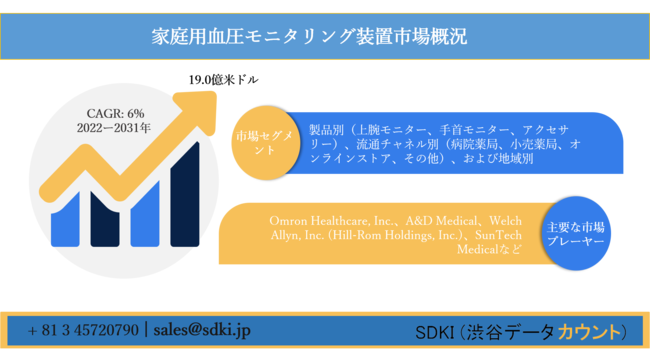 SDKI Inc.が「家庭用血圧モニタリング装置市場ー世界の予測2022ー2031年」の新調査レポートを2022年03月14日に発刊しました。レポートは、業界の新ビジネスチャンスとともに、市場とその成長見通しの完全な評価を提供します。さらに、2022ー2031年の予測期間中の市場規模と年間成長率が含まれています。