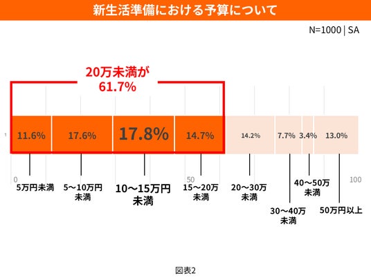 今年の新生活準備の平均予算は「20万円未満」が約6割という結果に 物価上昇の中で迎える新生活準備のキーワードは「まとめて・お得に・計画的に」