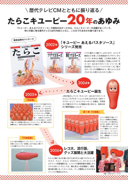 誕生から20年のあゆみやグッズ紹介など、「たらこキユーピー」ずくめの誌面も必見♪