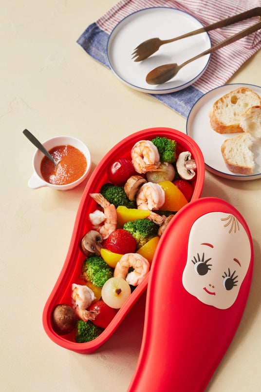 本誌限定の特別付録は、「たらこキユーピー」を再現した特製シリコンスチーマー。パスタをそのまま入れられるサイズで、材料を容器に入れ、レンチンしてソースとあえるだけでパスタが完成。パスタの調理はもちろん、さまざまな料理にも活用できます。折りたたんで小さく収納できるのも嬉しいポイント。容器に入れたまま食卓に出せば、盛り上がること間違いなしです。