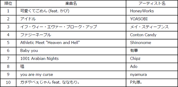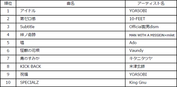 1位楽曲:「アイドル」アーティスト:YOASOBI