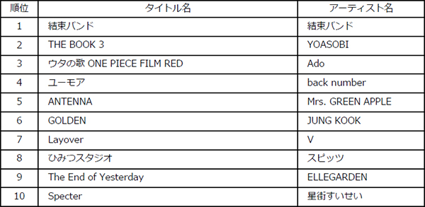 1位タイトル:『結束バンド』アーティスト:結束バンド