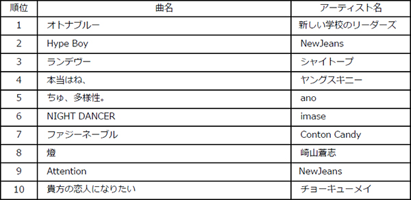 各チャートの順位およびYOASOBI、King & Prince、大森元貴(Mrs. GREEN APPLE)、結束バンド、新しい学校のリーダーズ、HoneyWorks、ゆこぴからの受賞コメントは、次をご覧ください。