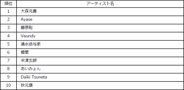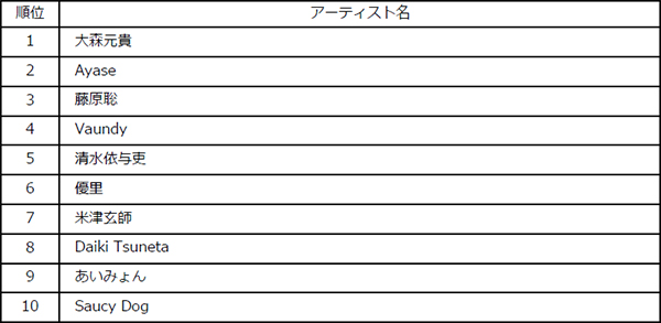 <総合ソング・チャート>と<総合アルバム・チャート>のポイントを合算したアーティスト・ランキング
