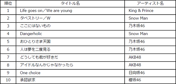 1位タイトル:『Life goes on/We are young』アーティスト:King & Prince