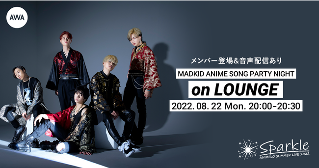 最終回となる今回のLOUNGEは、2022年8月26日(金)から28日(日)の3日間開催される世界最大のアニソンイベント『Animelo Summer Live 2022 -Sparkle-』への出演を記念して開催されるもので、MADKIDのこれまでの楽曲をメンバーと一緒に聴きながら、アニサマをより楽しむための予習イベントとなります。本イベントは、リアルタイムにメンバーが音声とチャットで参加します。LOUNGEは、どなたでも参加することができ、AWAアプリを事前にダウンロードしていれば、リクエストやアーティストとの交流など、よりお楽しみいただけます。ぜひ、MADKIDメンバー降臨のラジオ配信ラウンジをお楽しみください。