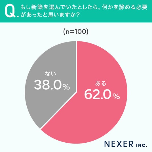 新築を選んでいたとしたら、何かを諦める必要があったと思っている方は6割以上いました。