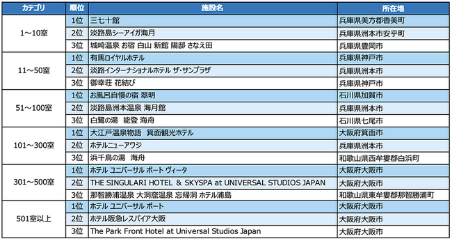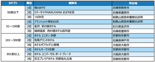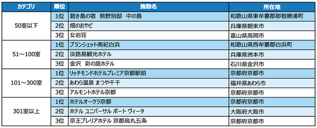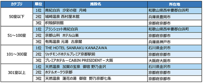 P5 じゃらん OF THE YEAR 泊まって良かった宿大賞(接客・サービス部門)51-100室のランキング