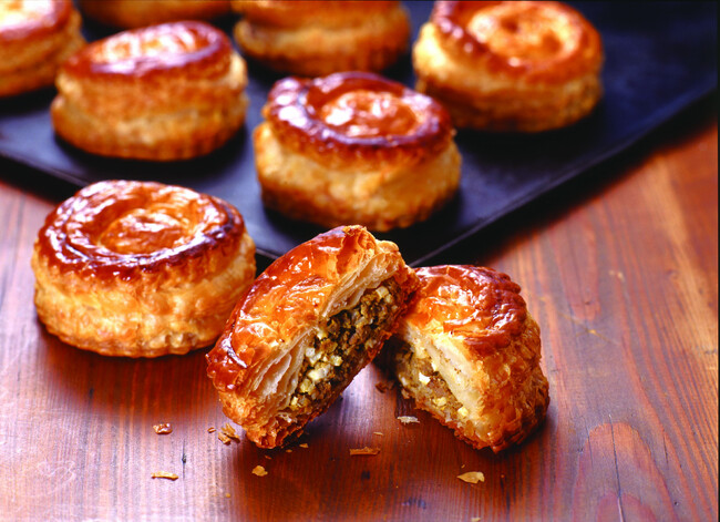 1923年、〈ユーハイム〉が神戸にお店を開いた当時から取り扱っていたミートパイを実演販売。