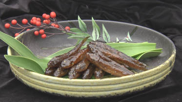 ハゼの甘露煮は愛知県三河地方のおせち料理には欠かせないもので、その歴史は江戸時代にさかのぼるといわれています。ハゼは正面から見た顔が能の翁(おきな)に似ていることから長寿の縁起物として喜ばれています。