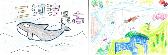 パッケージには商品名の横に、子どもたちがイベントを通して考えた「理想の三河湾」のイラストとメッセージが添えられています。シャチやクジラ、タコなどかわいらしい絵とともに、「三河湾最高」「ごみをなくそう!」など、子どもたちの愛にあふれたメッセージがたくさん。海を大切に思う子どもたちの思いが込められています。