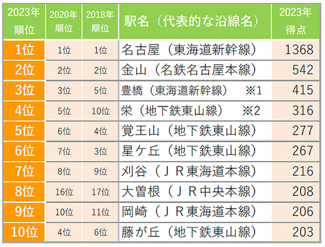 ・「住みたい駅」の対象駅は愛知県にあるすべての駅が対象。