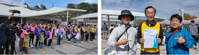 韮崎市は山梨県の北西部に位置し、この時期、紅葉シーズンを迎え、多くのハイカーが訪れます。今回、駅前広場での開催だったことから、駅を利用する観光客が、選手たちに大会の内容などについて訪ねる場面も多く見られ、スポGOMIについてやごみ削減についても呼びかけました。一方、韮崎駅の近くはサッカーの名門・韮崎高校がありサッカー部の生徒たちが定期的に清掃活動を行っています。このような活動を通じてこれからも美しい韮崎市を目指します。