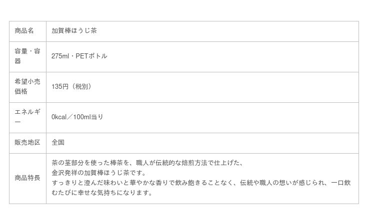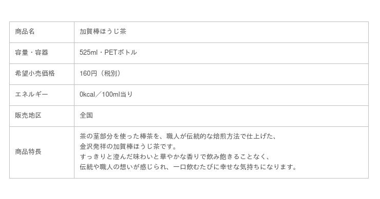 対象商品 :加賀棒ほうじ茶(275mlPETボトル、525mlPETボトル、希釈タイプ500mlPETボトル※2)の3商品 ※2…希釈タイプ500mlPETボトル「クラフトベース加賀棒ほうじ茶」は、現在販売は終了しました