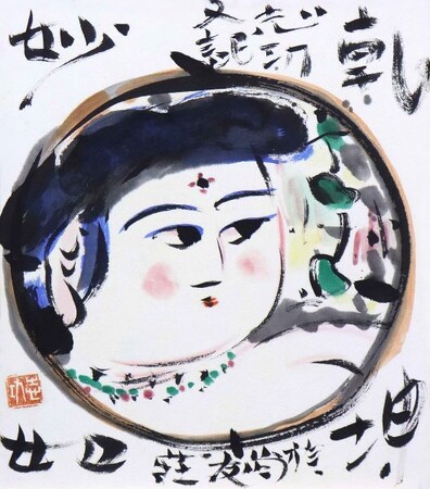 ↑「乾坤妃図」倭画、26.5×23.3cm 棟方志功鑑定委員会鑑定登録証 棟方巴里爾鑑定証 税込6,930,000円