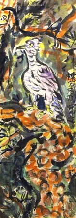 ↑「松鷹図」倭画、96.0×33.5cm 棟方志功鑑定委員会鑑定登録証 税込3,850,000円