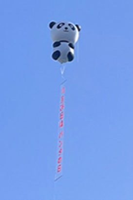 【サイズ】アドバルーン本体:幅約2.65m×高さ約3.5m 垂れ幕:高さ約10m