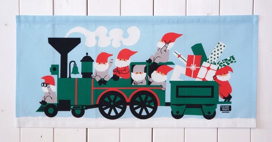 「Jerry Roupe(ジェリーローペ)」 北欧物語タペストリー “汽車に乗るトムテ”(縦30×横65cm)3,300円